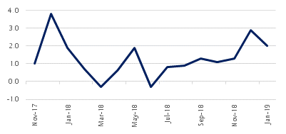Internet subscriptions (% chg; m/m)