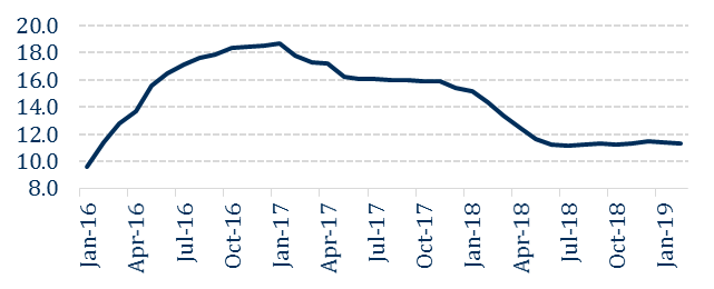 Although Nigeria’s economy has posted growth in the past five quarters, household wallets have not necessarily been re-built and so purchasing power remains low. In 2018, GDP per capita was US$1,930. However, this could be misleading given the skewed wealth distribution in the country. The average Nigerian’s spending capacity is US$50 per month. Inflationary pressure has also contributed to subdued spending. Headline inflation has remained at double-digits since February 2016. Meanwhile, salaries and wages have not grown in inflation-adjusted terms.
